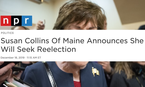 Susan Collins just announced that she is officially running for re-election in 2020. She wants to keep her seat. With your help, we won’t let her.